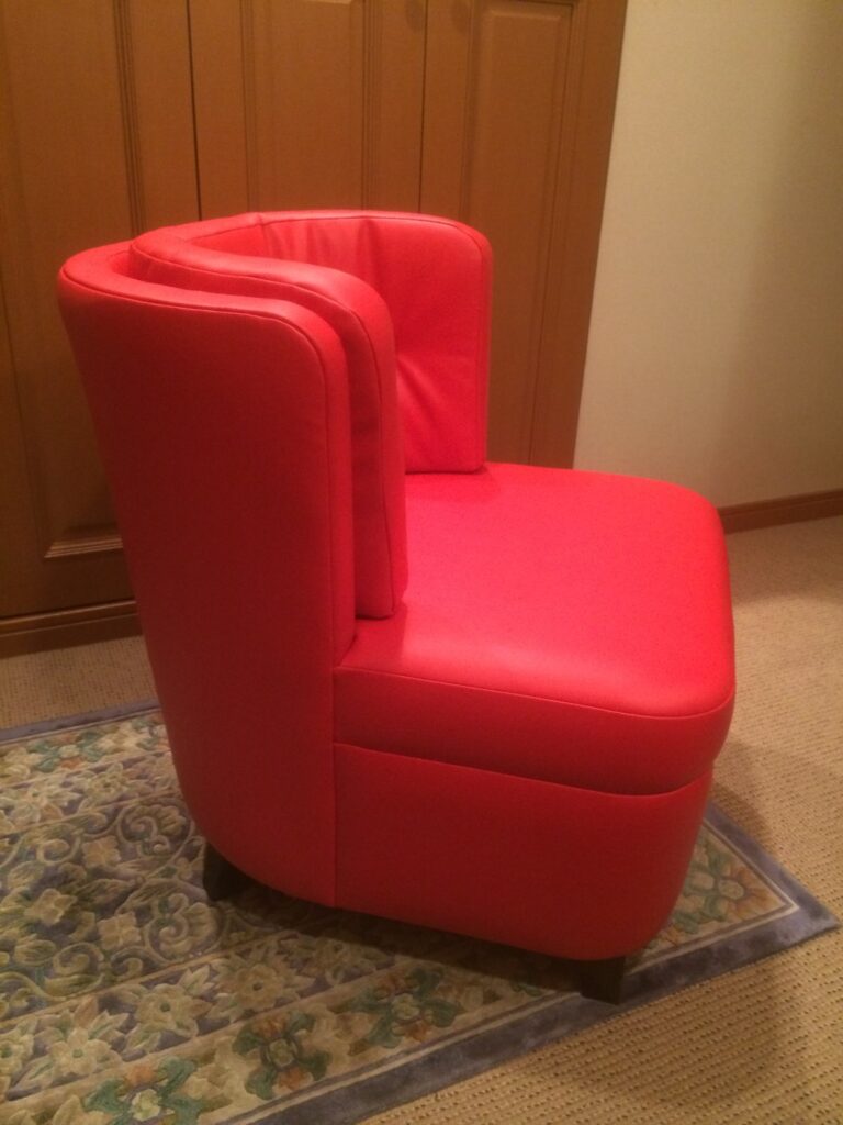 あるコーヒーチェーン店の椅子を真似て 2016-05-26 オーダー家具・ヘッドボード お客様からの要望で、あるコーヒーチェーン店の椅子を真似た椅子を 明るい色のビニールレザーを使用してご家庭用に製作させて頂きました。 写真と大体の寸法からで製作させて頂きましたが、 お客様からは、そっくりなフォルムと座り心地だと大変喜んで頂けました。