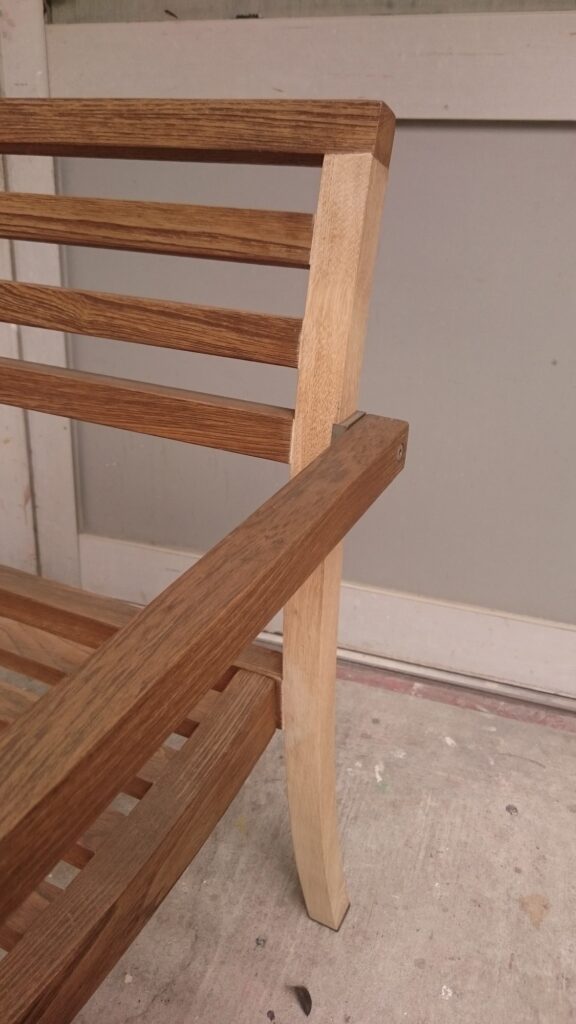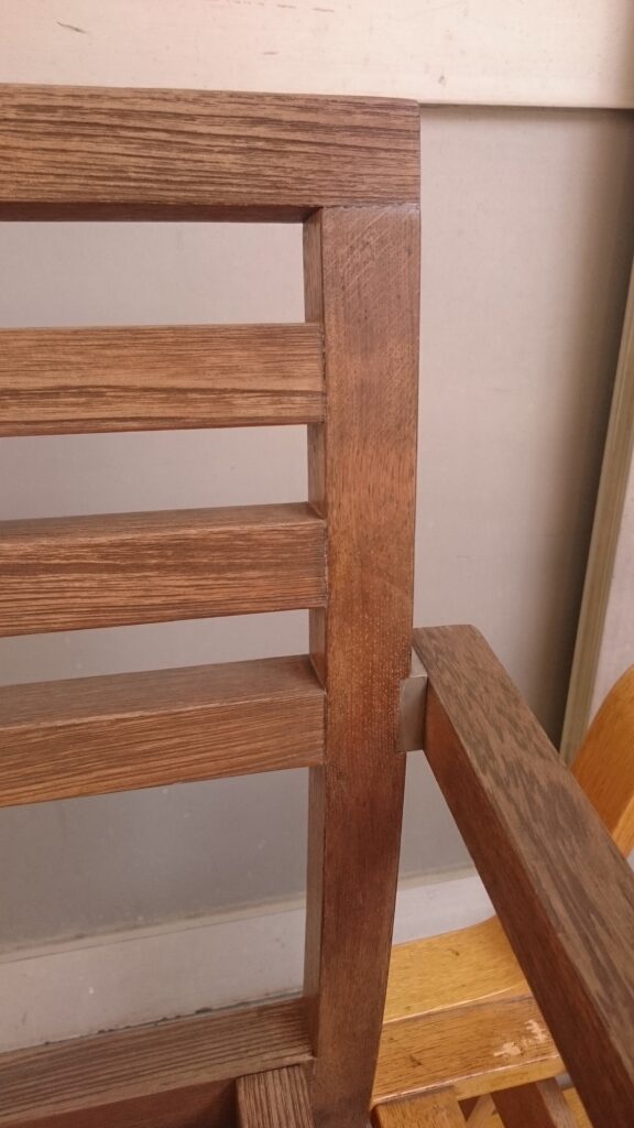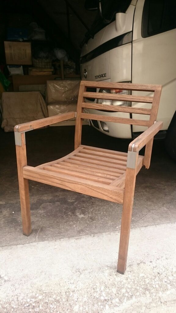 屋外用アームチェア脚木部修理 2016-08-18 家具の修復・張替 今回はアームチェアの脚木部修理です。 後ろの右脚が折れてしまっていたので新しく脚を製作して、取り付けてから できるだけ周りの色に近づけて塗装しました。 お客様にはどこを直したか分からないと褒めて頂きました。 【修理前】 【修理後】 【塗装前】 【塗装後】 ~家具に関することなら、ぜひ栃木県小山市間々田に自社工場のある佐山製作所まで~