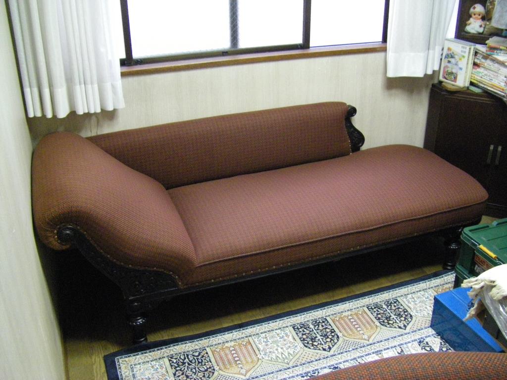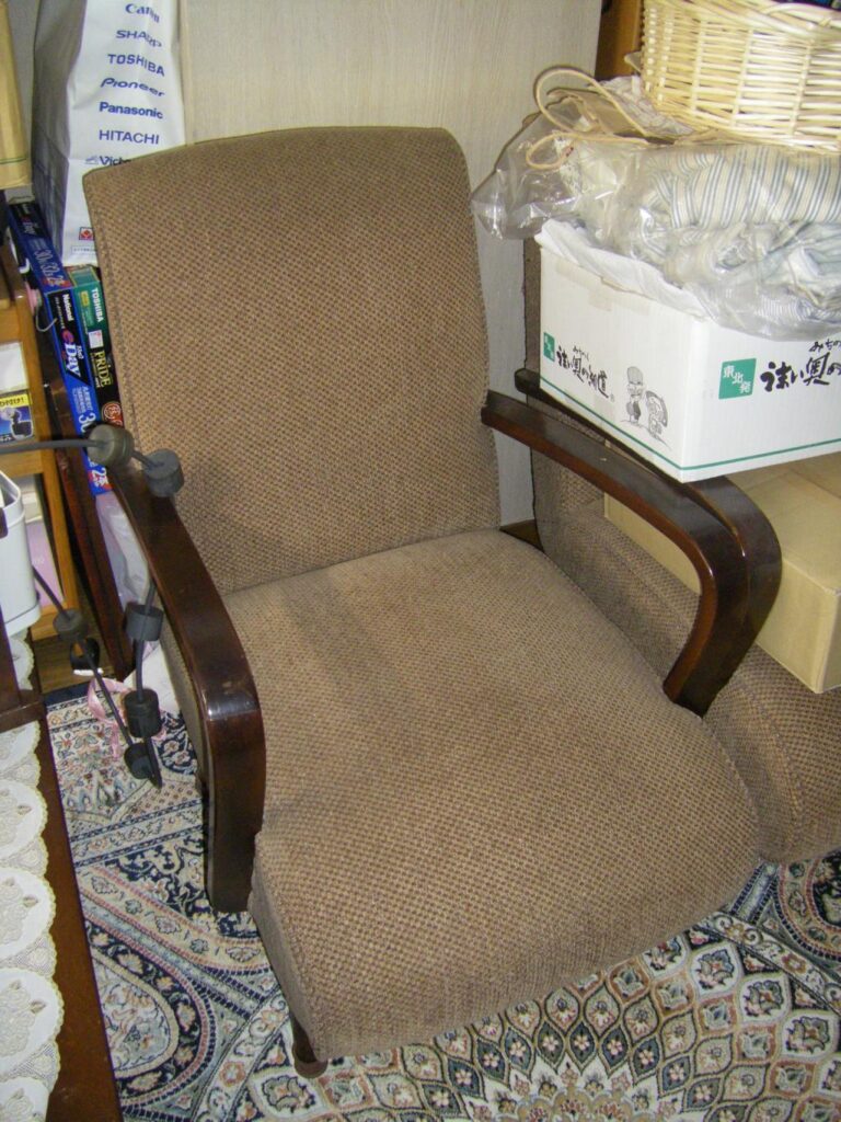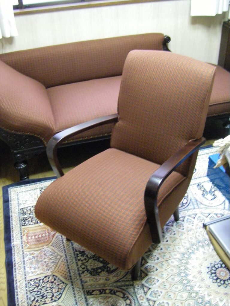 個人邸 椅子張替 2016-09-06 家具の修復・張替 本日は、弊社のある新橋の町内会のメンバーからの依頼で 個人邸のソファーと1人掛け椅子の中材のウレタン交換と張替を行わせて頂きました。 椅子の木部は、昔職人だった お客様の御尊父様が製作されたようで 凄く記念の椅子ということで丁寧に仕上げさせて頂きました。 【張替前】 【張替後】