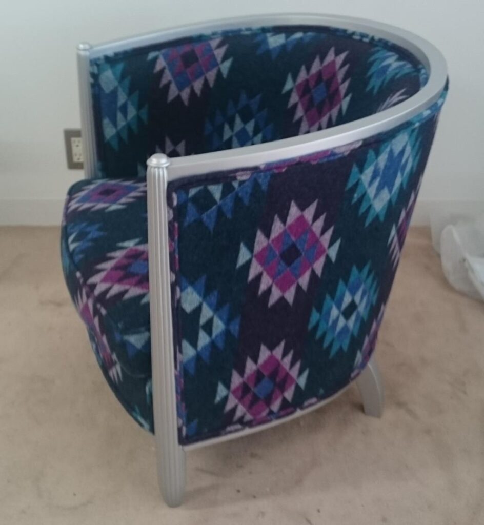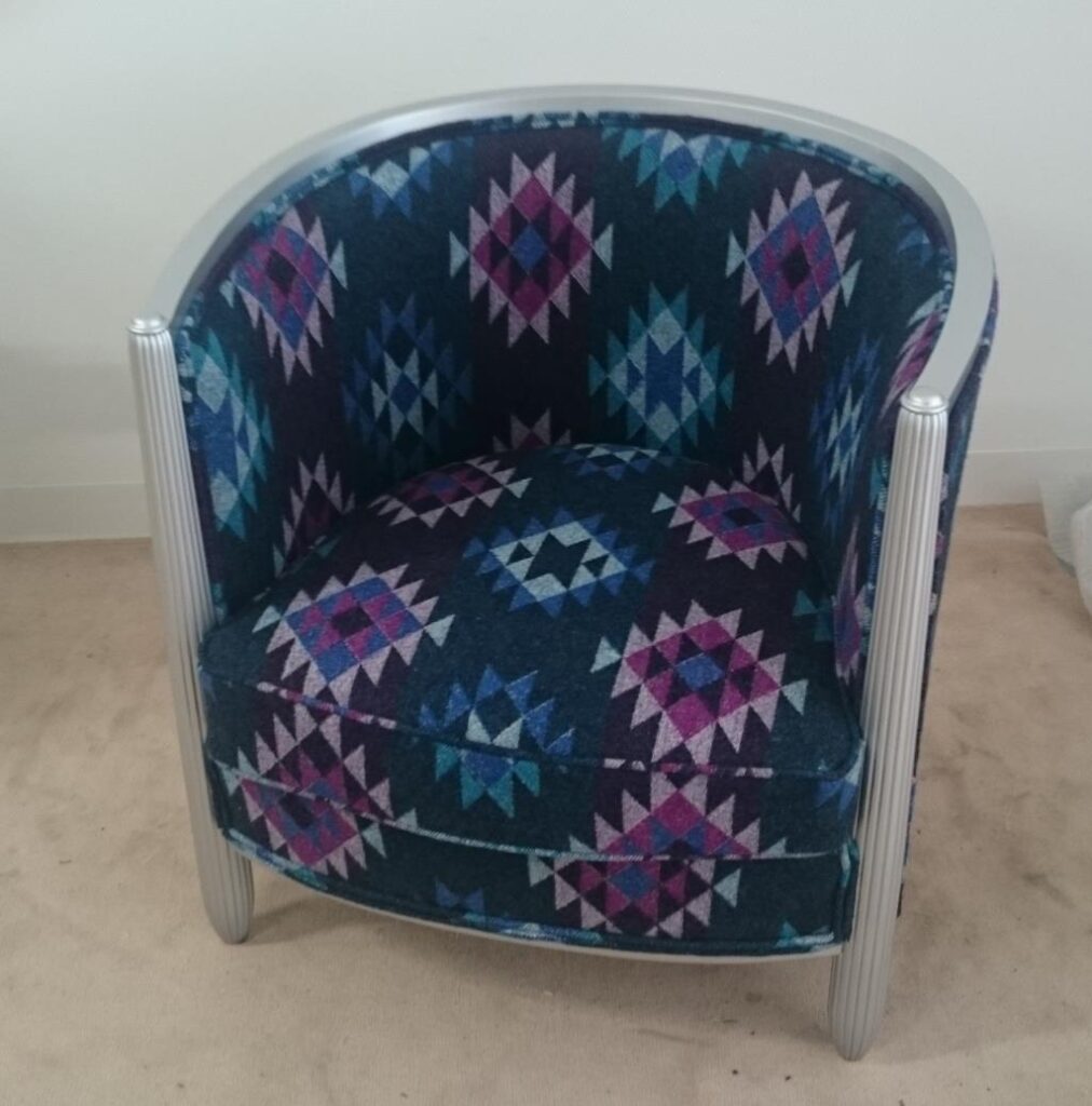 丸型1Pソファー張替 2016-09-06 家具の修復・張替 個人邸様の丸型1Pソファーを張替と塗装させて頂きました。 塗装は、シルバーメタリックの潰し塗装で、張地は、お客様のご支給布で張らせて頂きました。 張替前とは全くの別物の仕上がりとなり、お客様には、大変喜んで頂きました。 張替前 張替後