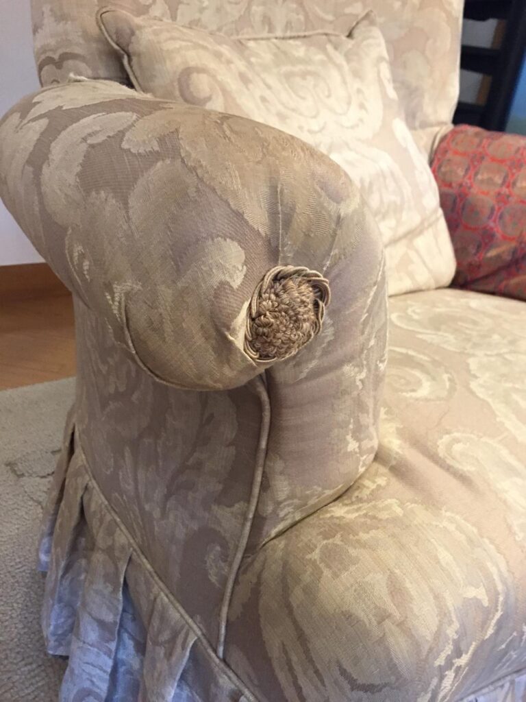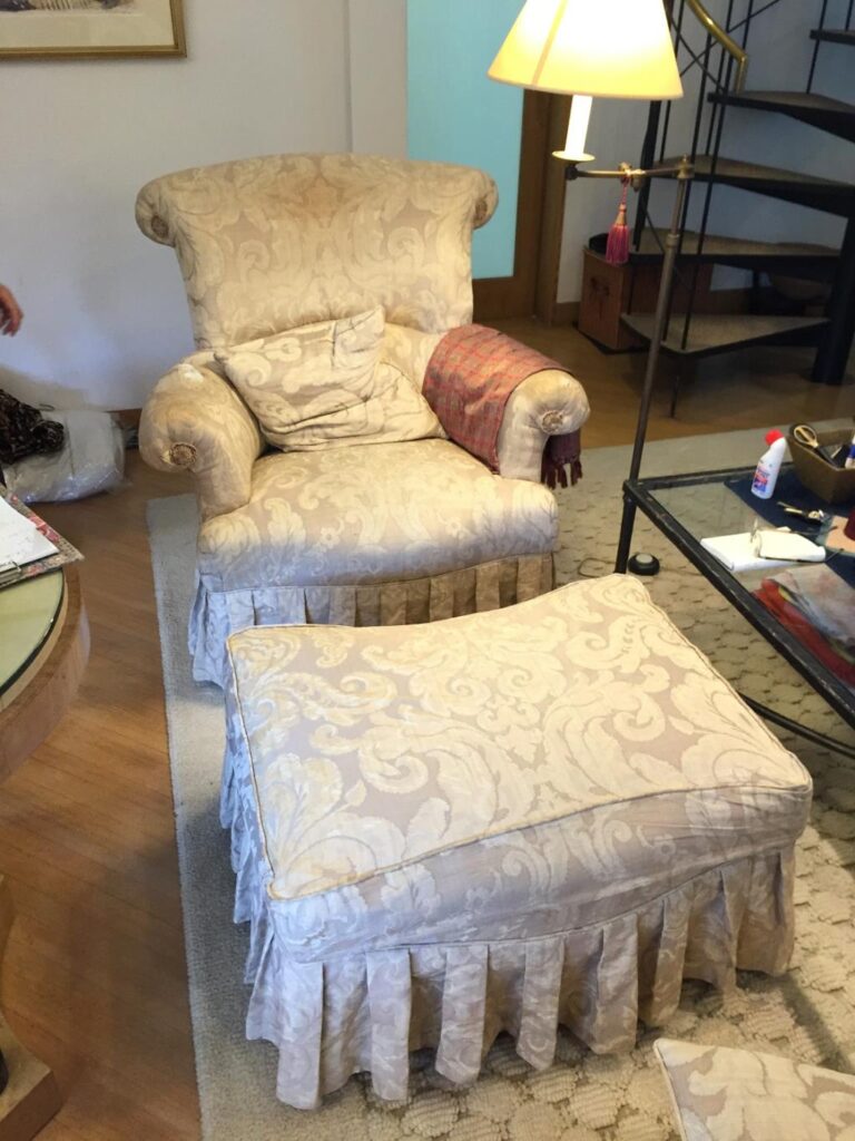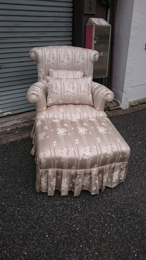 パーソナルチェア及びスツール張替 2016-10-27 家具の修復・張替 個人邸様分の、パーソナルチェアとスツールの張り替えをして、 納品させて頂きました。 座面のウレタンは補充にて、その他の箇所も成形をして張替を致しました。 張替前のスタイル(ハカマ・カーティサン付き)は変えずに作業致しました。 張替前 張替後 before ⇒ after