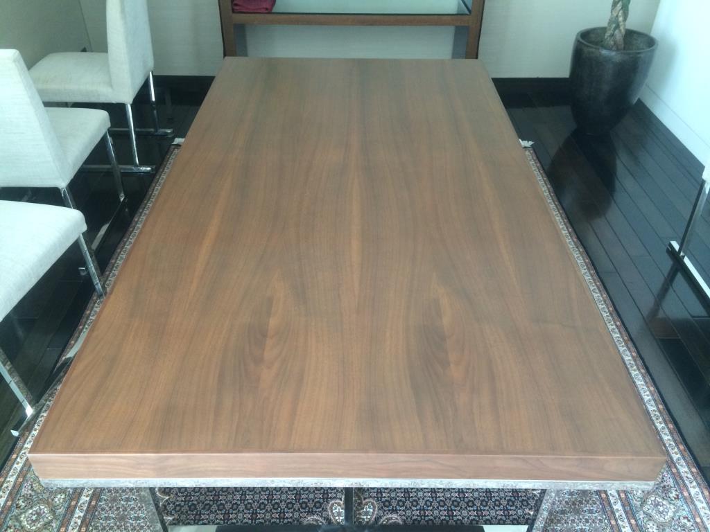 ダイニングテーブル 剥離塗装修理 2016-11-15 家具の修復・張替 本日は、個人邸の ダイニングテーブルを剥離塗装させて頂きました。 剥離塗装とは、一旦表面と塗膜を綺麗に落として、再度塗装をさせて頂くやり方で 通常の上塗り塗装に比べて、新品に近いクウォリティーまで仕上げることが可能です。 【修理前】 【修理後】 表面をアップで写真にとると下記のようなシミやキズが多くございました。 下記が、いったん表面の塗膜を剥離した状態となります。 下記が完成状態です。