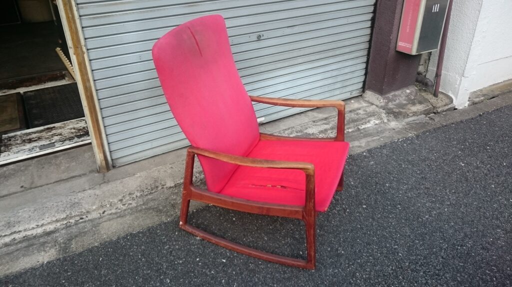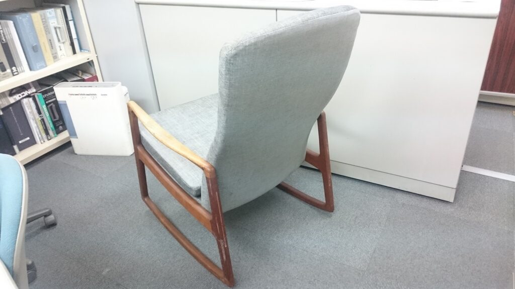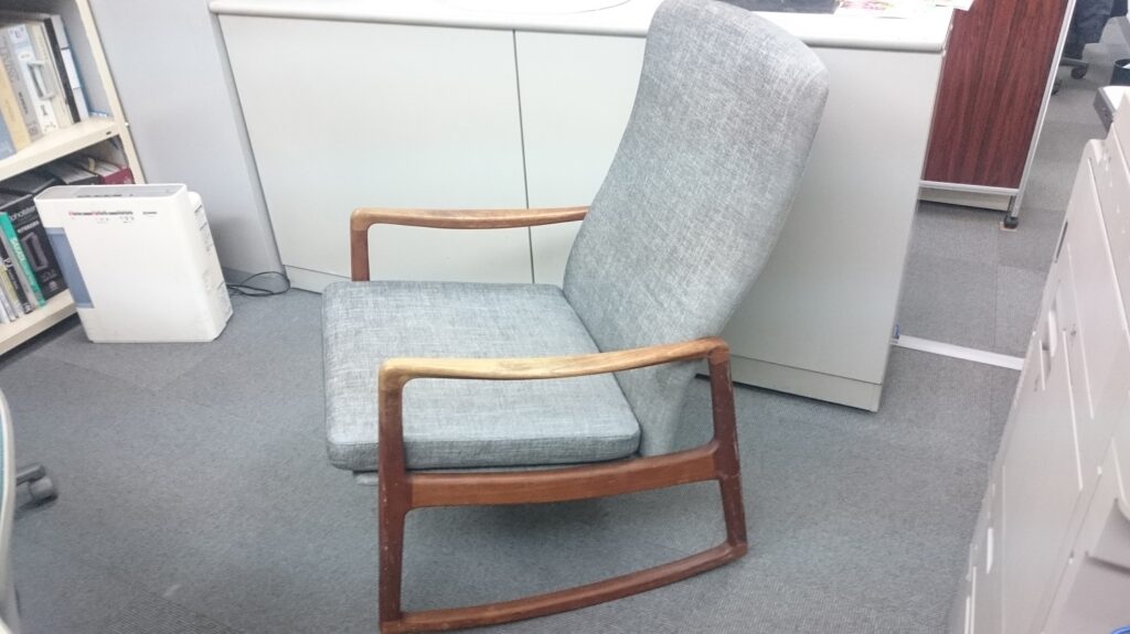 ロッキングチェア張替&スツールカバー 2016-11-29 家具の修復・張替 今回は、ロッキングチェアの張替とスツールカバーの製作をさせて頂きました。 ロッキングチェアは傷みが酷く、座のクッションも無かった為、新規で製作いたしました。 張替修理前 張替修理後 スツールカバー製作 スツールカバーは生地に凹凸が有るため、稜線重視で少々ルーズに仕上げました。
