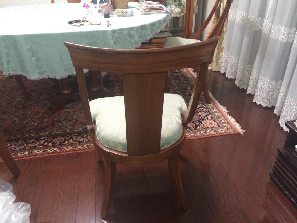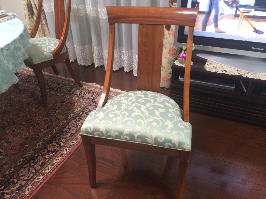 個人邸 ダイニングチェアー張替 2016-12-07 家具の修復・張替 本日は、個人のお客様からの依頼で ダイニングチェアーを張替(サンゲツ:UP8235)と木部修理をさせて頂き、そちらを納品させて頂きました。 納品時に旦那様がいらっしゃらず、奥様に納品させて頂き 奥様も喜んで頂けたのですが、 旦那様が帰宅後、わざわざ 「素晴らしい出来で感激しています。本当にありがとうございます」 というメッセージを頂きました。 【張替前】 【張替後】