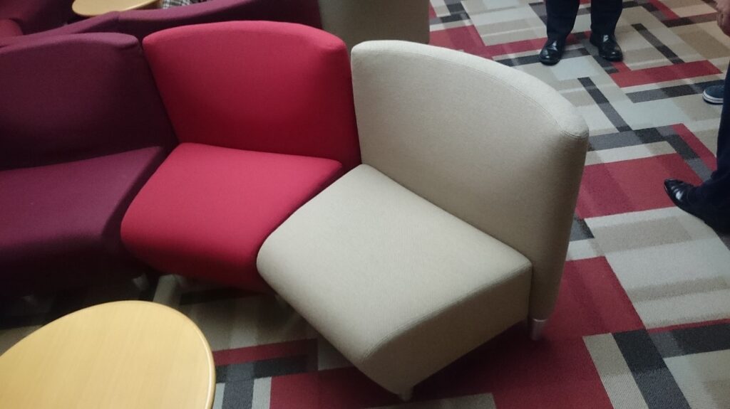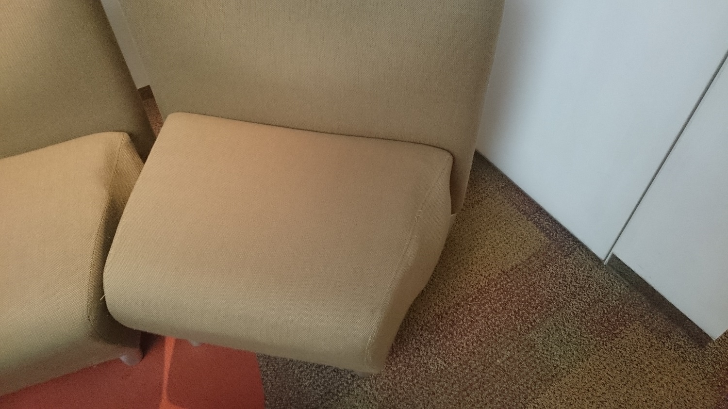 ロビー待合ソファー張替 2016-12-15 家具の修復・張替 都心の某企業様のロビー待合ソファーを張り替えさせて頂きました。 座面のウレタンが崩れてしまった為、一部ウレタンを交換、 再度成形をして、張替をいたしました。 張替前 張替後