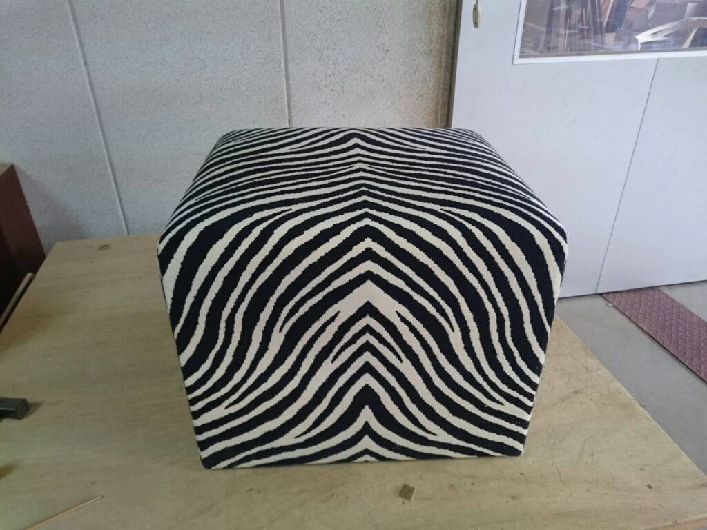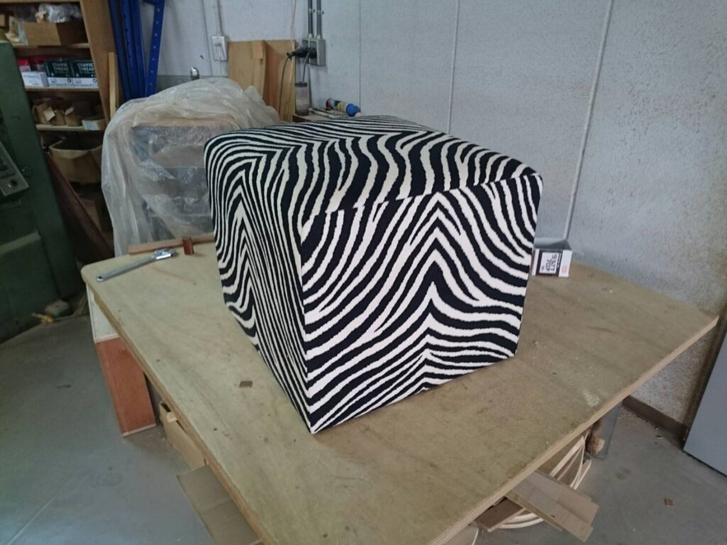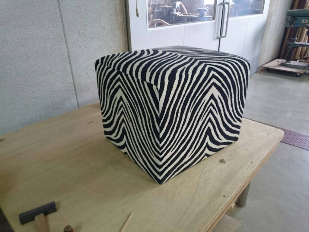 今回は別のお客様ですが、縞柄のスツールを製作させて頂きご納品いたしました。