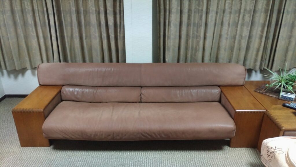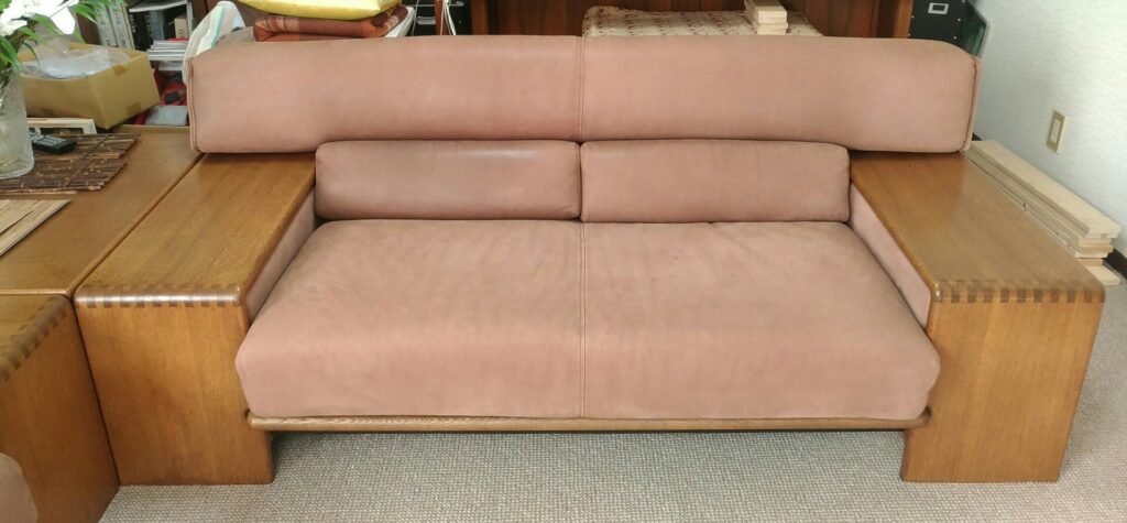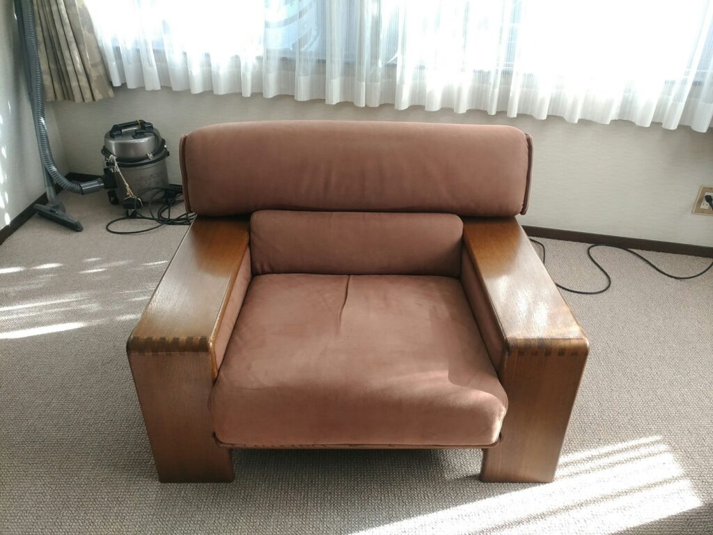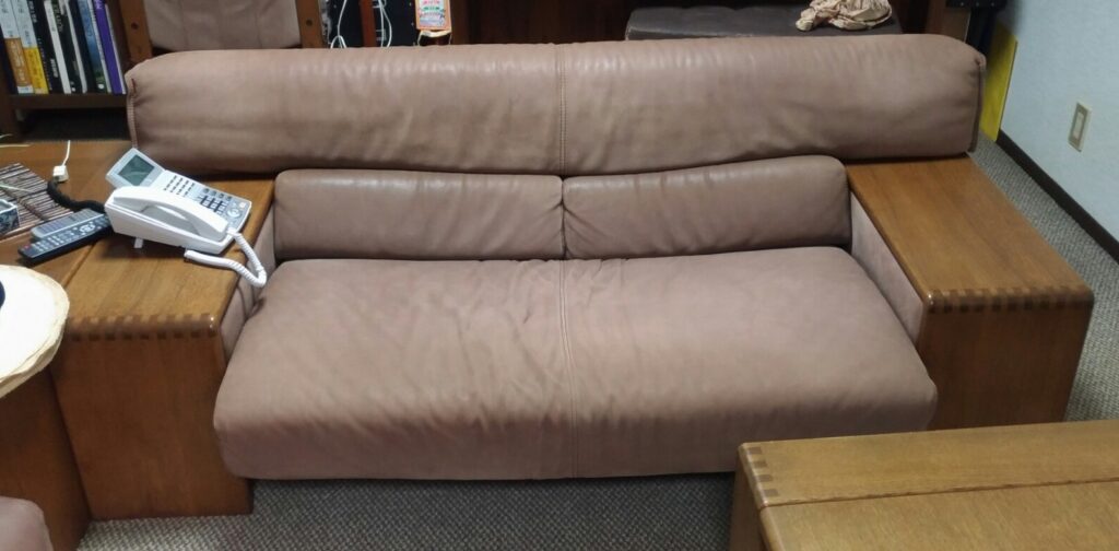 ソファは30年以上使用されていましたが、中材のウレタンとウェービングテープが劣化していた以外は綺麗な状態でしたので、今回はウレタンとウェービングテープのみ交換しました。