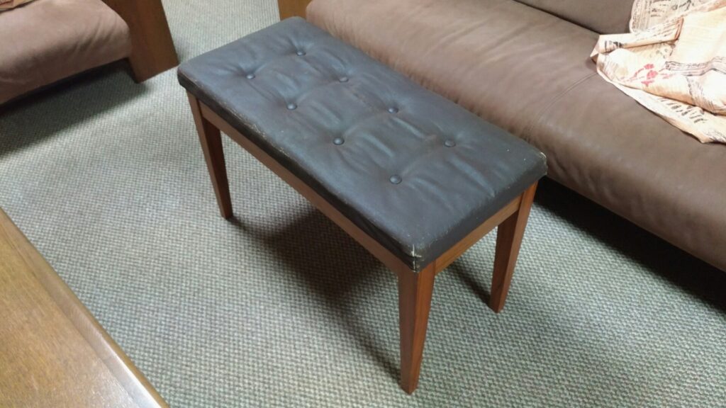 ピアノ椅子はウレタンも交換し、ビニールレザーから本皮に張替えました。