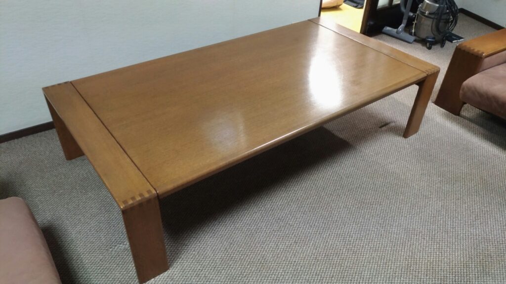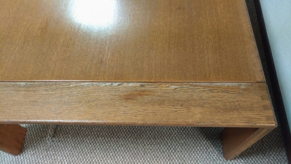 テーブルは剥離するほど劣化していなかったため、ウレタンの重ね塗り再塗装を施し、