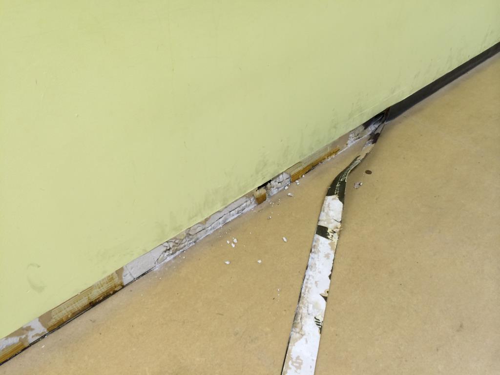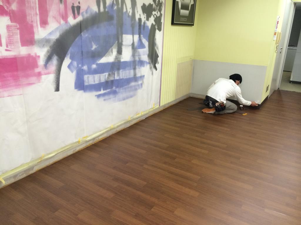 今回は、巾木の交換もありましたので、既存の巾木を剥がして、新しい巾木を貼り付けていきました。