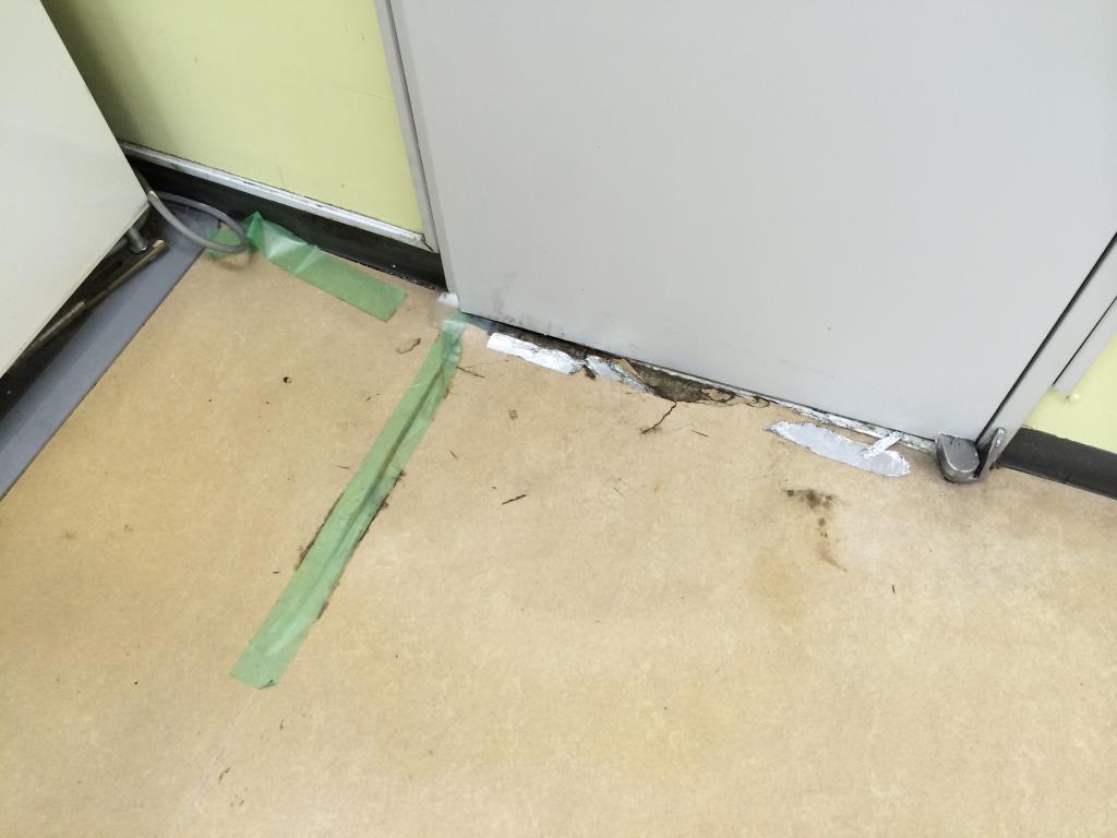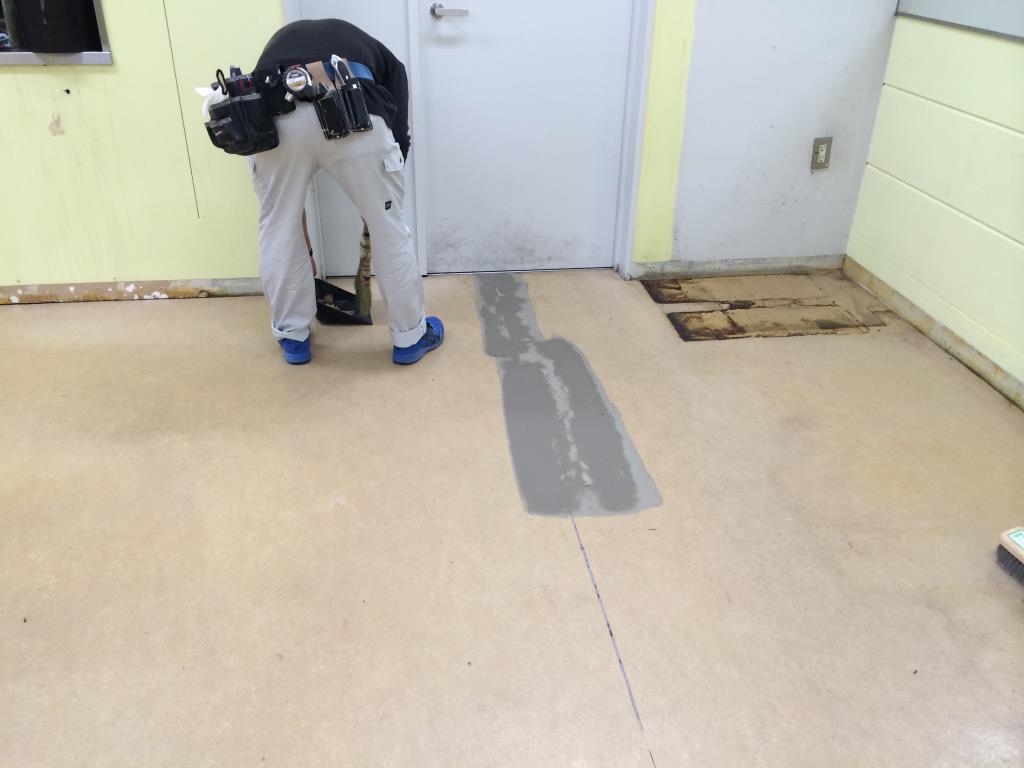 まず、最初に床の損傷が激しい箇所にパテ埋めをして床を平滑にしていきます。