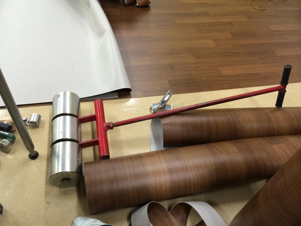 その後、ローラーを使用して、糊と長尺シートを接着させていきます。