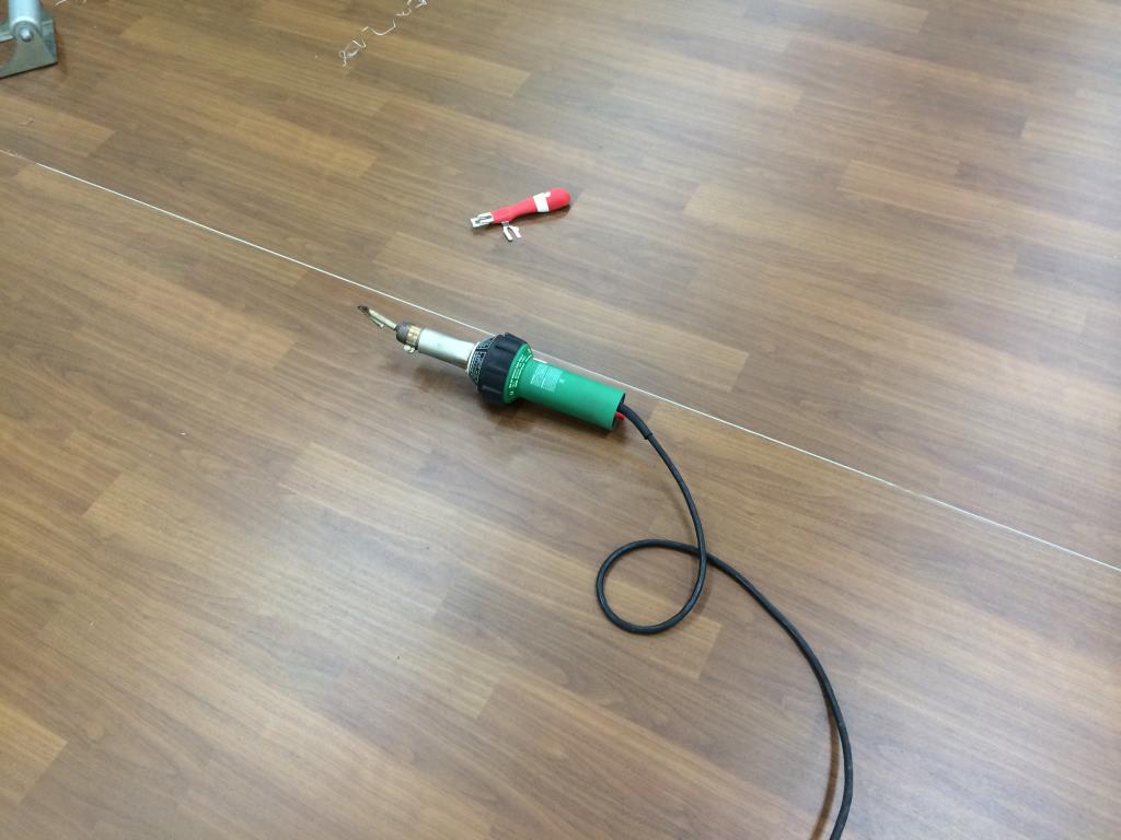 その後、長尺シートのジョイント部分には、溶接棒(左)と工具(右)を使用して、長尺シート同士を接着していきます。