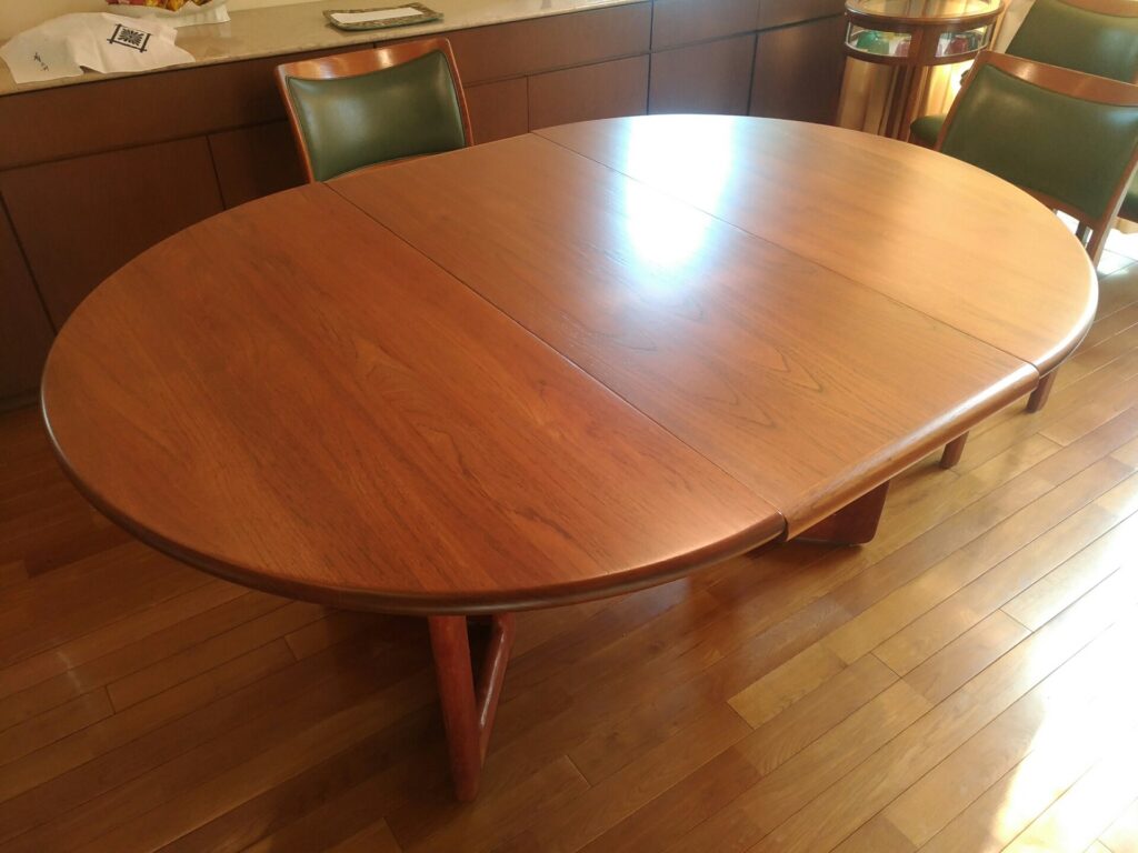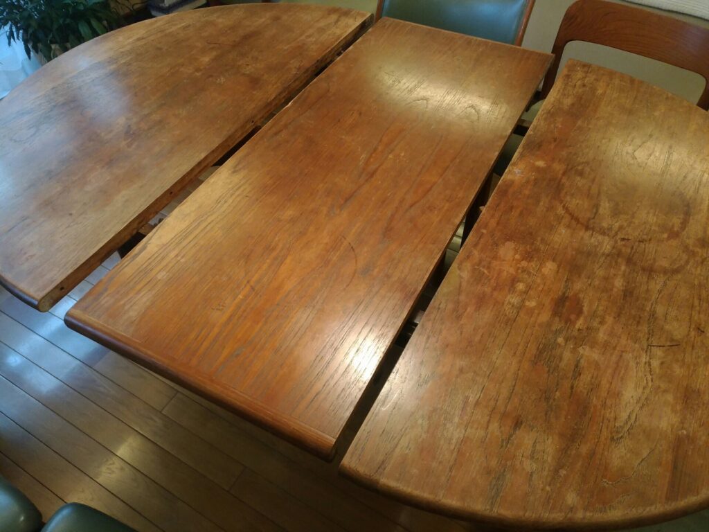 今回はチーク材のダイニングテーブルの剥離、及び再塗装をさせて頂きました。