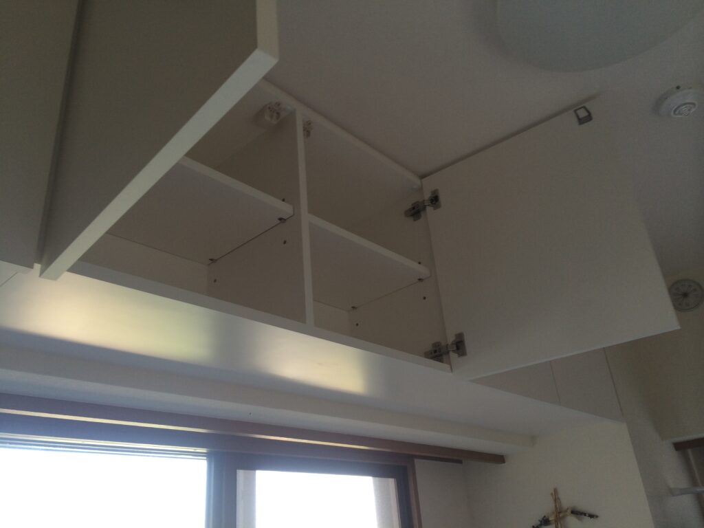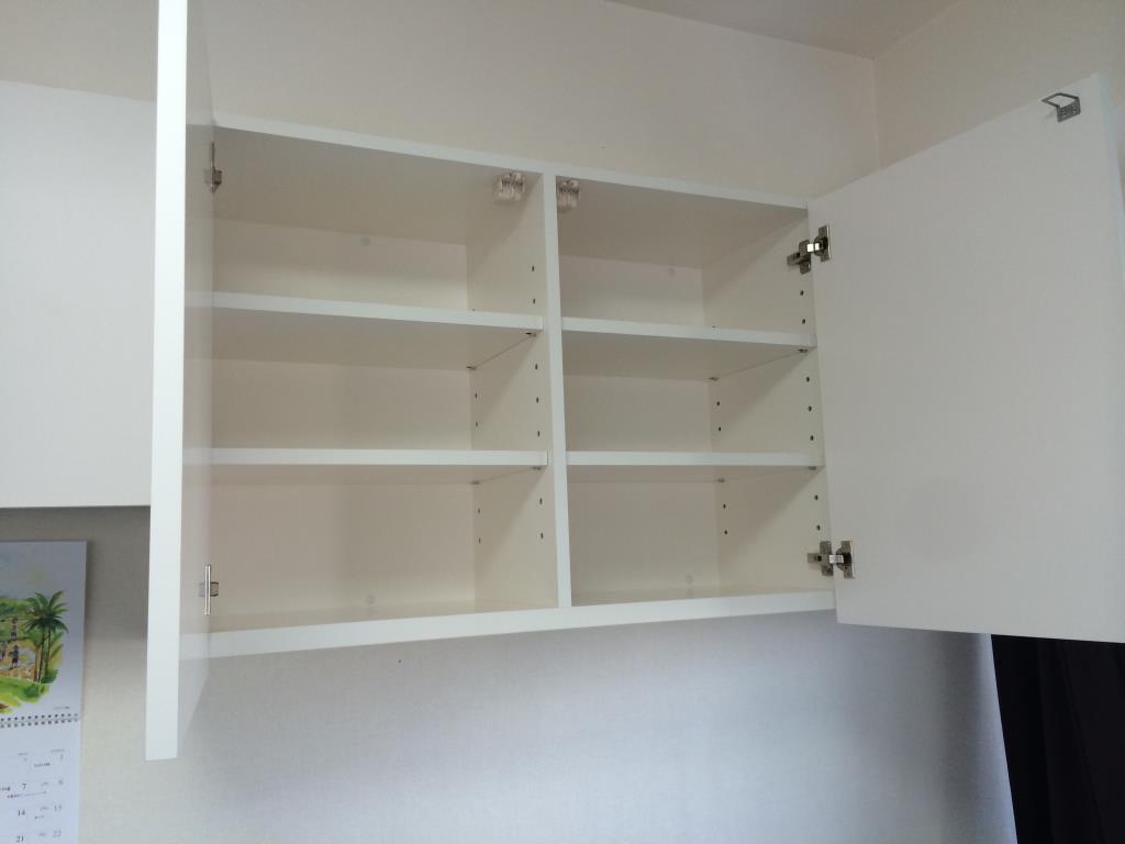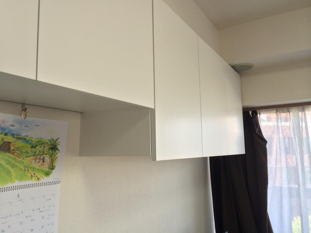 打合せを重ねさせていただき、他の家具に合わせて、今回は白のポリ板を使用し、