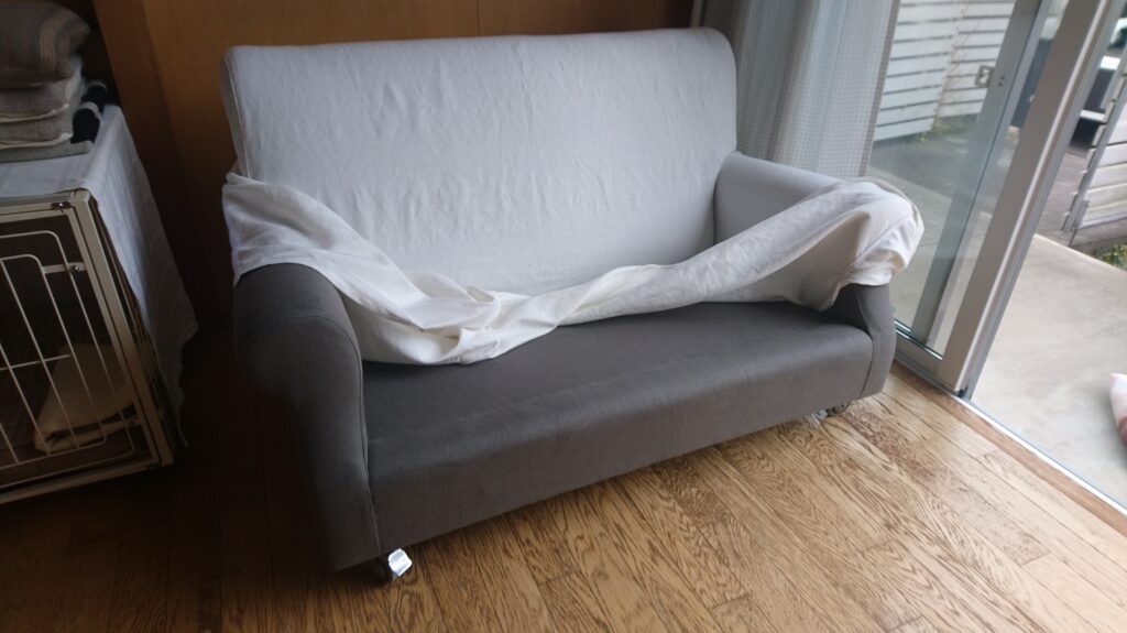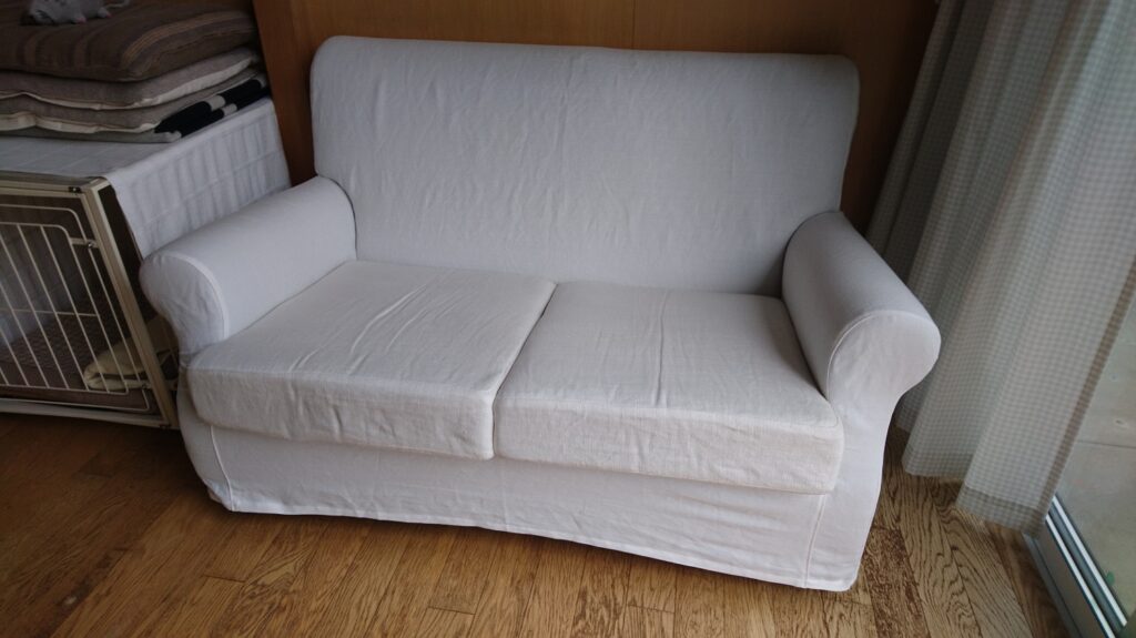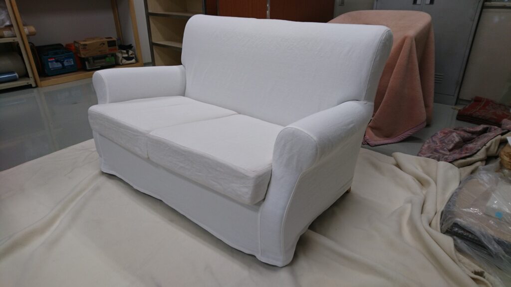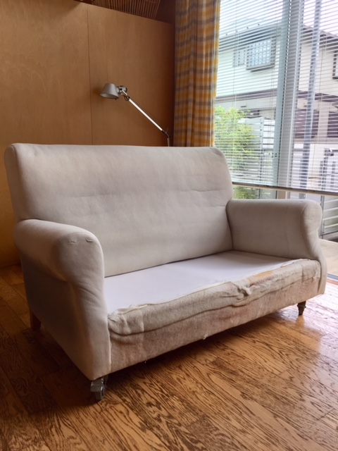 個人のお客様より2Pソファーの本体張替及び座クッション中材交換と、