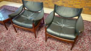 今回は、マンションエントランス用チェアの座以外の本革部分を、塗装修理させていただき、納品をいたしました。